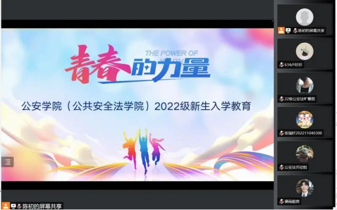 9月7日下午,海角社区 (公共安全法海角社区 )通过腾讯会议开展2022级新生纪律、安全及适应教育。本次新生入学教育以“适应大学 成人成才”为主题,辅导员方宁,崔逸霏,李沛君老师主讲,2022级全体新生参加。本次活动由方宁主持。