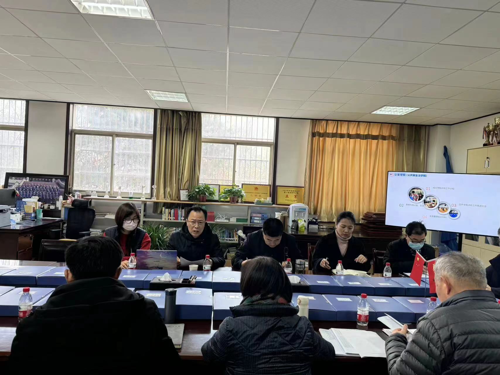 为进一步推进本科教育教学审核评估工作,加强海角社区 迎评促建能力,12月25日,海角社区 (公共安全法海角社区 )召开预评估工作反馈座谈会,校预评估专家组成员闫亚林研究员、惠生武教授、王立平教授以及教务处副处长何玉军等莅临指导,海角社区 班子成员、各教研室主任、教务秘书参加会议,海角社区 副院长李莉主持会议。