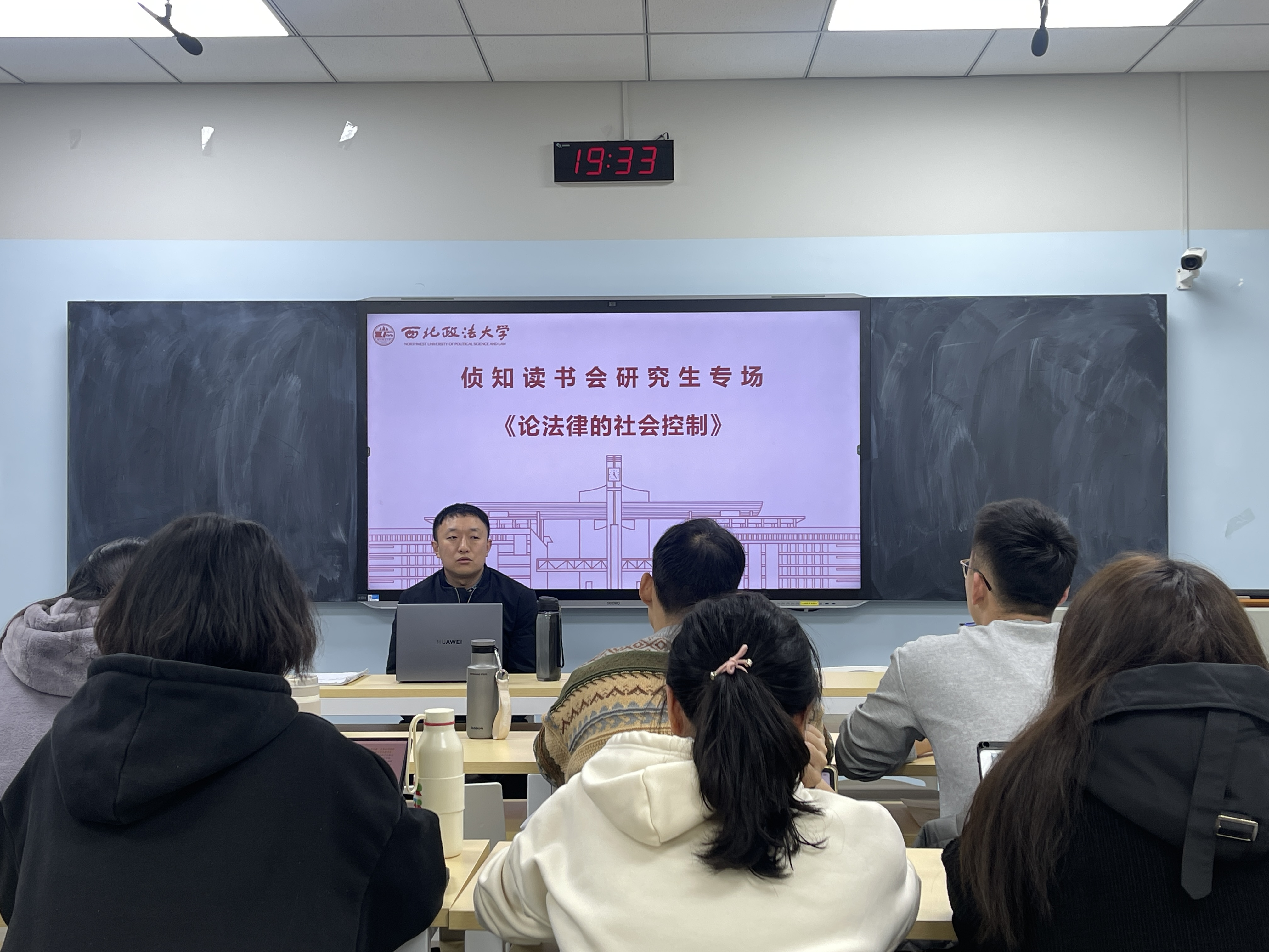 12月10日晚,侦知读书研讨会研究生专场《通过法律的社会控制》在海角社区 雁塔校区三号教学楼605教室举办。本次活动由海角社区 院长助理胡德葳老师主持,海角社区 和法律硕士教育海角社区 部分研究生参加了本次活动。