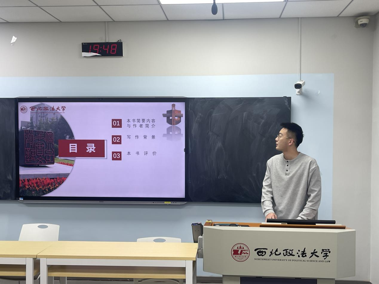 23级法律硕士杨荆楠同学从法律本体论、法律方法论、法律价值论三分方面对本书进行了梳理概括。杨同学首先介绍了本书的背景与内容概要。她认为法律是社会控制工具,包含秩序、依据和过程三个层次,通过调整关系和安排行为维护社会秩序。杨同学还提到了庞德强调法律的根本精神是正义,将正义与利益结合,提出最高效节约地满足人类需求作为法律任务。在法律价值论上,庞德指出法律背后总有评价冲突利益的准则,这些准则经立法者和法律工作者系统发展,与文明社会生活假说相关,适应当时法学任务和社会理想。