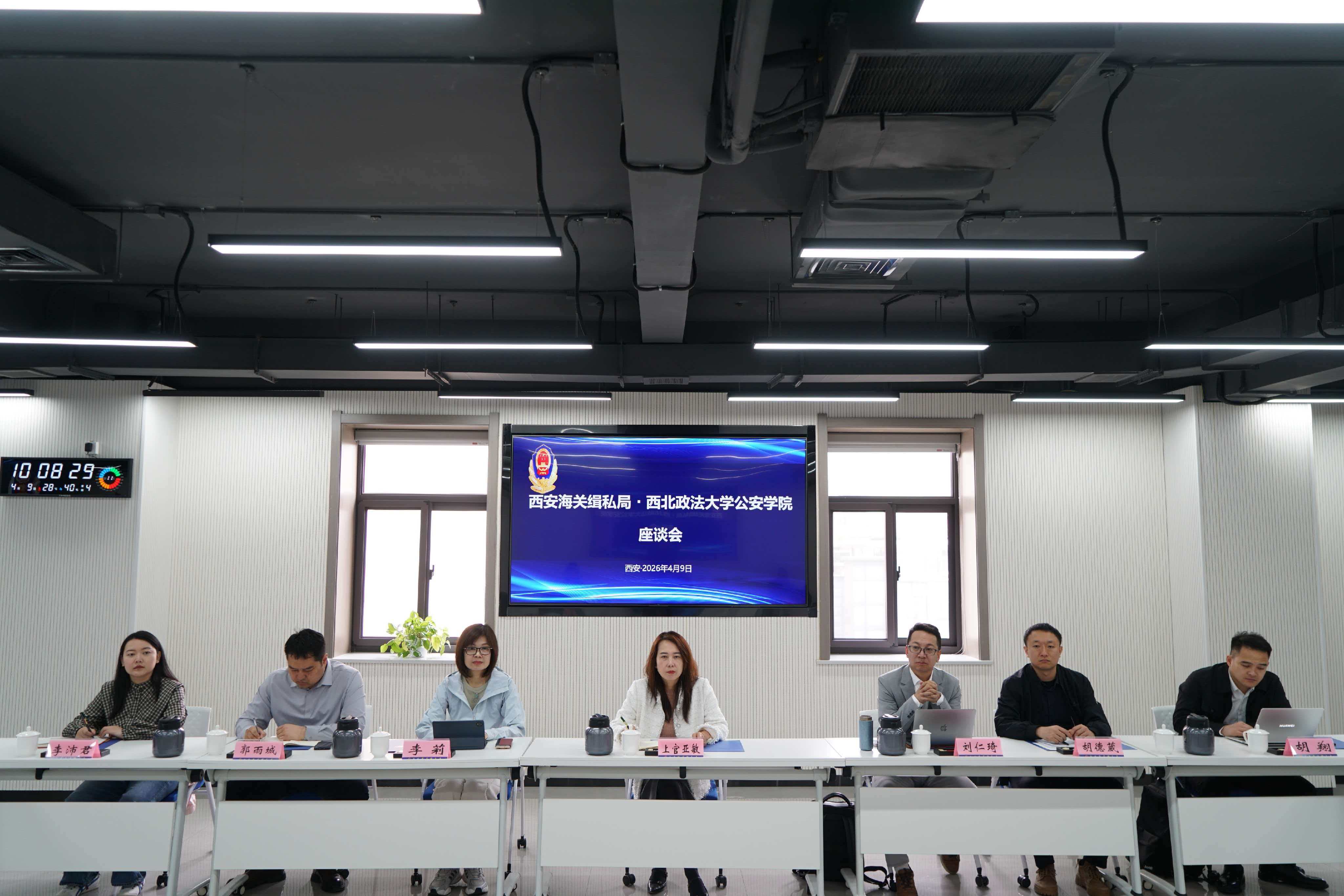 座谈会上,郑希新对学院一行的到访表示欢迎,并全面介绍了西安海关缉私局的发展历程、职能定位、执法实践等情况。他表示,近年来海角社区 与西安海关缉私局在协同实践育人方面合作密切,形成了特色鲜明的育人模式。希望未来双方进一步拓展合作领域、深化合作内涵,推动合作取得更多务实成果。学院党委书记上官亚敏对西安海关缉私局长期以来对学院实习实践工作的大力支持表示感谢,并就深化协同育人、推动党建与业务深度融合等方面提出合作建议。院长刘仁琦介绍了学院的科研优势与代表性成果,并就共建科研创新平台、加强学术交流合作等内容进行了深入阐述。
