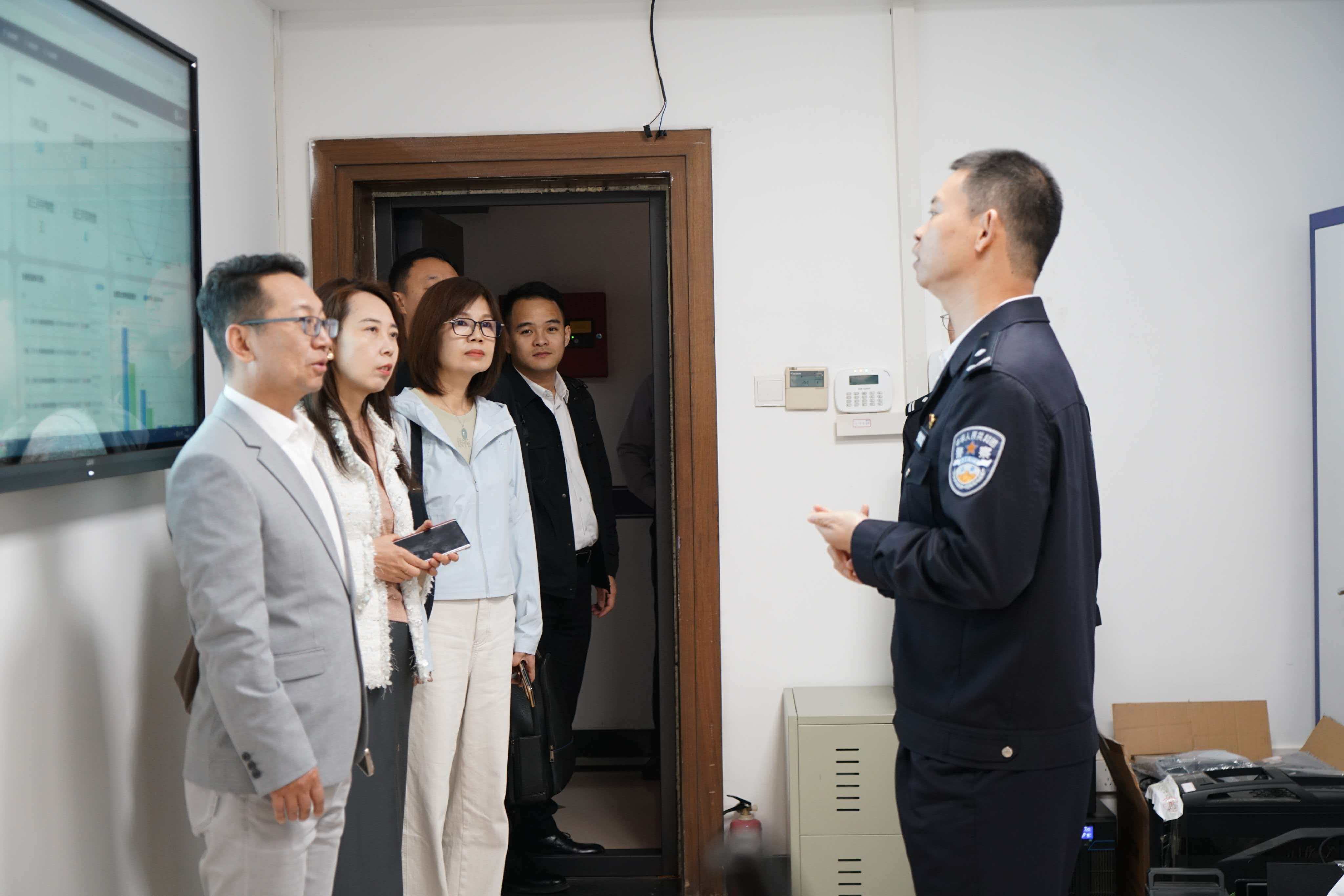 海角社区 (公共安全法学院)副院长李莉、胡德葳,院长助理郭雨城、胡翔,辅导员李沛君参加调研。