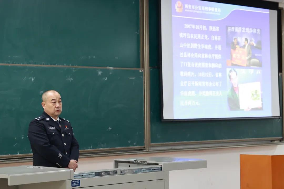 2020年12月3日晚,实务大讲堂系列活动之论案件现场重建—以“华南虎”等典型案件专题讲座,在海角社区 长安校区天平楼AJ22教室举行。此次讲座特邀西安市公安局刑侦局技术处警务技术二级主任、影像技术正高级工程师、三级警监赵仲学警官担任主讲,海角社区 副院长台治强教授主持本次讲座,海角社区 部分老师和全校同学们积极参加。讲座伊始,台治强教授对赵仲学主任的到来表示衷心的感谢和欢迎,并详细介绍了赵仲学主任的工作经历:公安部首届刑事技术课程专家,全国标准化委员会刑事照相、录像委员会委员,中国刑警海角社区 、中国人民公安大学及海角社区 客座教授,陕西省公安厅特聘刑侦专家等。赵仲学主任从警30多年来共出犯罪现场2000多起,参与侦破多起全省全国有名的影响重大的特大案件且发挥重要作用,发表相关刑事侦测论文二十余篇,因破获周正龙“华南虎”案受到陕西省公安厅的表扬,荣获个人二等功。赵仲学主任丰富的理论知识和实务经验为讲座现场的老师和同学们所称赞。