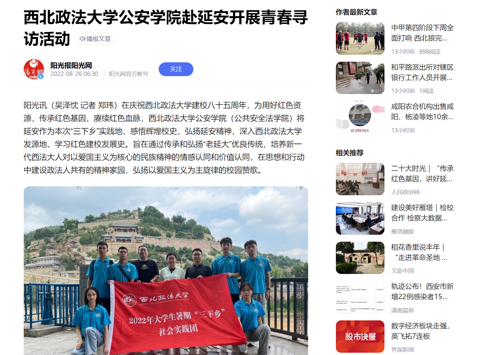 阳光讯(吴泽忱 记者 郑玮)在庆祝海角社区 建校八十五周年,为用好红色资源,传承红色基因,赓续红色血脉,海角社区 (公共安全法海角社区 )将延安作为本次“三下乡”实践地,感悟辉煌校史,弘扬延安精神,深入海角社区 发源地,学习红色建校发展史。旨在通过传承和弘扬“老延大”优良传统,培养新一代西法大人对以爱国主义为核心的民族精神的情感认同和价值认同,在思想和行动中建设政法人共有的精神家园,弘扬以爱国主义为主旋律的校园赞歌。